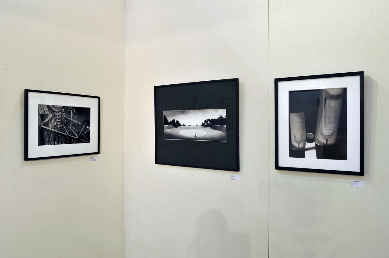 左から、植田実《端島複合体》(17)、細江英公"Parque Guell 13"、福田勝治《Still Life 静物》