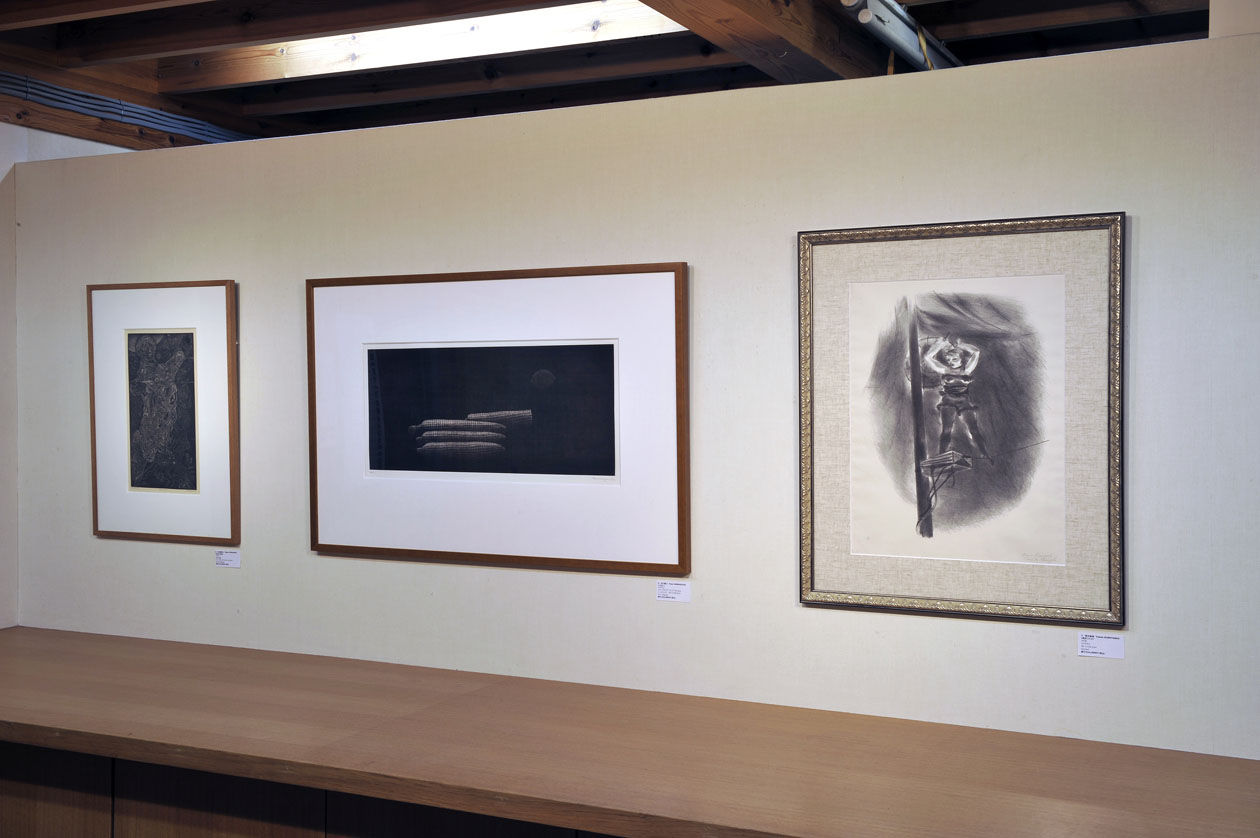 画廊コレクションの中から、モノクローム技法(木口木版画、マニエル・ノワール、銀塩写真、他)にこだわり、黒の魅力を表現した12作家の作品20点を展示しています。