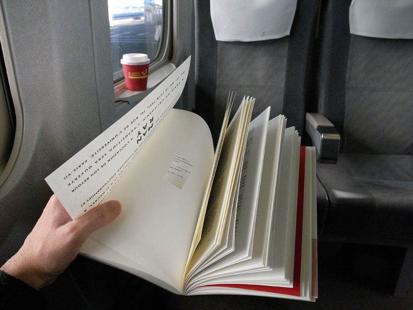 読者を海外と想定した、200頁程のボリューム感ある書籍。マン・レイの展覧会を個展とグループ展に別け、年代順・都市別に並べる事によって、仕事の変遷と各国の受容史をとらえるよう意図した。諸般の事情から図版は厳選。文字情報の客観的表記だけでは辞書のようになって楽しみに欠けるが、情報に恣意的要素が入りすぎると古書目録と同じになってしまう。わたしの後に続く、若い研究者の為にも「エフェメラ」愛の情熱を伝える本でなくてはならない。コレクションについては、京大カード方式で整理しているものの、入場券や新聞や出品リストに加えて会場写真など展覧会に関係する全ての物品、およそ800点を規則に従ってデータ化し、判りやすく記述するのに頭を使った。原物確認を初めてみると、二転三転と方針を変える必要にせまられ、手戻りが続出したのには参った(変えるのが本人だから、嘆くのは間違いだけど)。