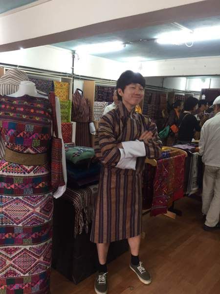 私自身の仕事が繊維関連であることから、ブータンの織物の素晴らしさに惚れ、15年余りまえにニューヨークでブータンの布を購入したこともある。今回ブータンを旅して、民族衣装の持つ力を改めて強く感じた。男性用は丹前のようなゴ、女性用は巻きスカートのようなキラ(テュゴという上着と併用)で正装には男性はカムニ(身分によって色が違う。一般人は白)、女性はラチューという肩掛けの着用が必要。ガイドさん・ドライバーさん(男性)はゴを着て、空港に出迎えてくれ、その後ずっとゴのままだった。暑いときはゴの上の部分を脱ぎ、肌着を見せていた。長めの黒ソックスに革靴が決まりのようだ。ゴそしてキラの素材は絹、木綿、ウールがあるが、様々なデザインがあり、なかなかオシャレである。現在も各地で手織りで生産されているが、一部インドから機械織りの織物が入ってきている。もちろん、価格は大きく違う。ゾンや寺院に入るときは地元の人は制服でもある民族衣装姿が義務であり、宗教心の篤さも表現するように思う。ブータンの風景も民族衣装がアクセントとなり、旅の感動を提供してくれる。一方、民族衣装を義務化することにより、民族衣装用の生地(織物)づくりを含め、伝統工芸が守られている。GNH(総国民幸福量)の4つの柱の一つに「伝統文化の保護と推進」があり、その考え方に基づき民族衣装の義務化が行われている。伝統文化を守るためにはある程度の義務化は必要に違いない。日本では和服とくに男性用については明治の時代に放棄したことで、多くの伝統そして産業が失われてしまった。女性の着物はまだ残っているものの、生地や仕立ての産地・産業は大きく縮小したままである。今になって、「和装復興」と言っても、手遅れの観がする。