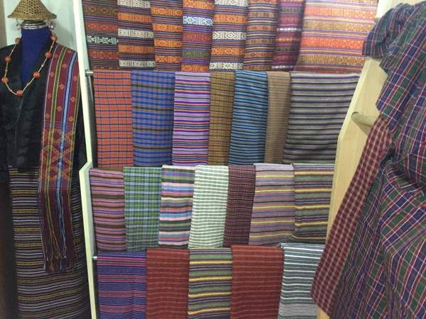01ブータンのキラ・ゴ売り場に並ぶ生地