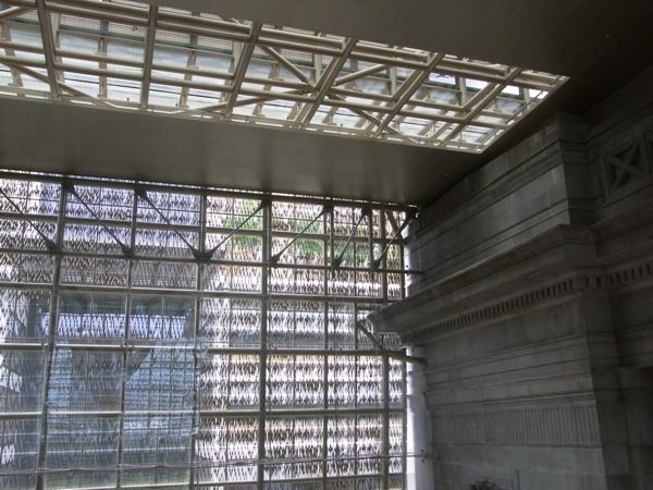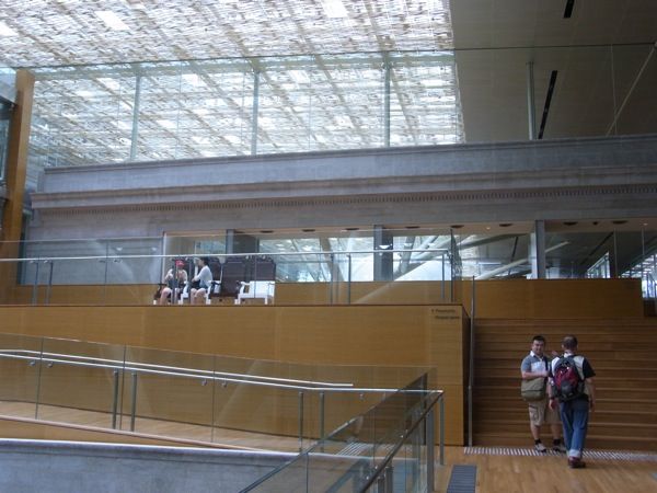 裁判所側の天井はガラスで覆われています。ちなみに裁判所とシティホールの間には渡し廊下がかかっているのですが、高所恐怖症の自分は真ん中を歩かないと怖くて渡れませんでした。