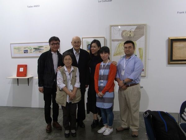 以前から安藤忠雄や草間彌生の作品をご購入いただいているマダム(中央)には今回もたくさんお買い上げいただきました。左に写っている旦那様は建築家で安藤忠雄の大ファン。自らデザインした自宅も安藤風のデザインになってらっしゃるとか。
