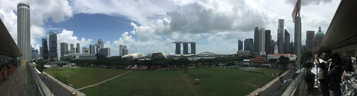 フェア終了の翌日は元々納品などがあった場合のために、飛行機は夜の22時出発のものを予約し、日中は予定を開けてあったのですが、結局葉栗剛の<男気>《天狗…》以外はお客様が持ち帰るか、会期中にこちらから出向いて納品してしまい、<男気>《天狗…》は現地の配送サービスに納品してもらうよう話がついたので、1日自由時間となってしまいました、ですので、この日はチェックアウト時間である12時ギリギリまで惰眠を貪り、その後は去年の11月の記事で話題に挙げたNational Gallery Singaporeに行ってまいりました。前日掲載の浜田さんの記事も合わせてご覧ください。元々用途の違う建物、しかもそれを二つ繋げて美術館としているので、かなりクセのある構造をしており、個人的には収蔵物以上に建物自体に興味を惹かれました。また、シンガポールの中心部にありながら、建物の目前には広い芝生の空間が広がっており、大変見晴らしが良かったです。