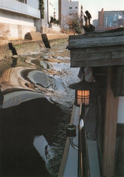 高梨豊「しゃっちょこ丸」堀川〈しゃっちょこ〉は屋形船の屋根に乗っているシャチホコの東京訛り。高梨さんのことばは江戸好みで、たとえば〈醤油〉は〈御下地〉となる。堀川沿いの建物は路面に向けては装うが、川面の裏側はまことに素っ気ない。