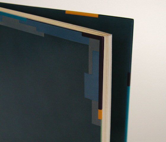 全ての折丁のランゲットを接着したあと、表装材でおおい、装飾を施す。和装本から着想を得た製本形態(下図参照)。