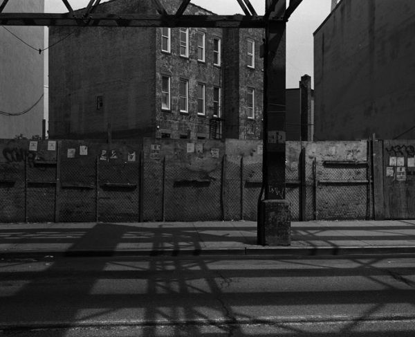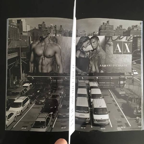 先に挙げた見開き(図4)と(図5)では、東京で撮影された写真(図7)とニューヨークで撮影された写真(図8)が組み合わさっていますが、この写真集ではそれぞれの画面全体を一度では見渡すことができないようになっています。したがって、写真集を見る人はページの間を「行きつ戻りつ」して、写し取られた断片的な光景のディテールを見ながら左右に分断された写真を頭の中で接合するような作業をしていくことになります。このように、敢えて写真を分断して見せるというユニークな編集方法を用いることで、めまぐるしく変化する二つの都市を行き来しながらその様相を記録してきた小島康敬の都市に対する姿勢や、それぞれの都市の特徴や違いが鮮明に浮かび上がってきています。