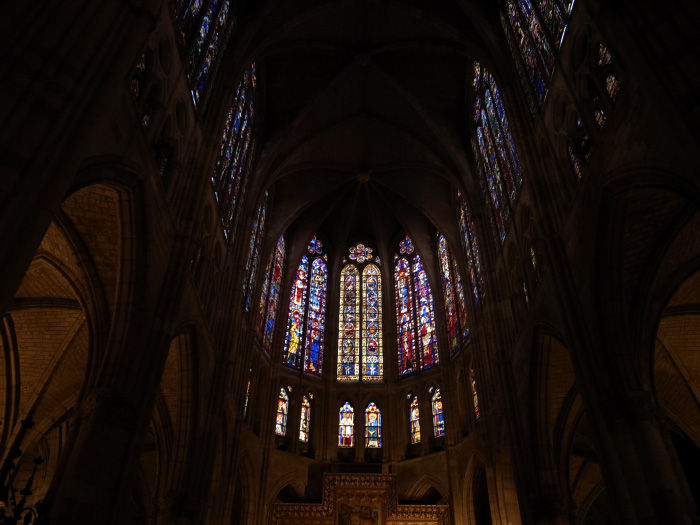 大聖堂を有名にしているのはステンドグラスである。特に、フランスでは戦災等によって失われてしまっている中世の時代のステンドグラスが大量に残されているのが貴重である。現代では再現が不可能と言われる見事なステンドグラスが聖堂空間を埋め尽くしている。圧倒するような外観とは異なり、内部は色鮮やかな光で満たされた空間である。