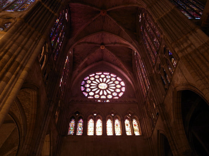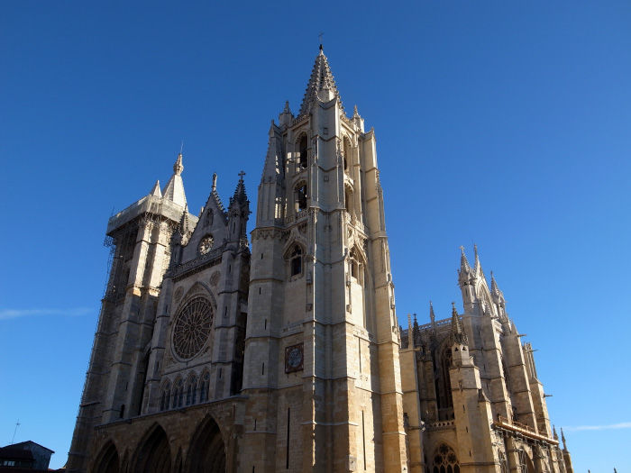 カテドラルとは、しばしば「大聖堂」と訳されるが、本来は「司教座聖堂」のことである。ギリシャ語で椅子を意味するカテドラ:kathedora「椅子」が語源で、椅子のある教会、つまり司教の椅子のある教会を意味している。実際には「大聖堂」であることが普通ではあるが、大きいからといって「カテドラル」であるわけではない。とはいえ、実際にはかなりアバウトで、教会法上では「カテドラル」ではなくても、一般的に「カテドラル」と呼ばれている教会も少なくない。もちろんこのレオンのカテドラルはどちらの意味においても「カテドラル」である。