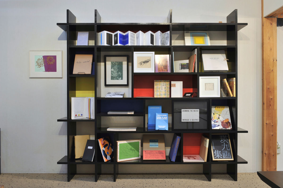 画廊では新設した書棚を舞台に、浜田宏司さんプロデュースによる「アートブックラウンジ Vol.01“版画挿入本の世界”」を開催しています。