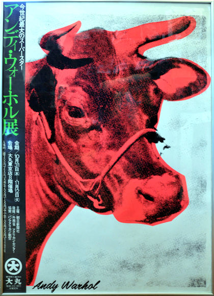 大丸のポスターと会場を埋めた白地に蛍光ピンクの「CAW」(牛の壁紙)は1966~71のファクトリーエディション版を踏襲していたが、ファクトリーはこれを正式にエディション版画とはしなかったのも、デパートであったためかもしれない。(*来日と同期にイケバナシリーズをファクトリーは正式エディションしたが)