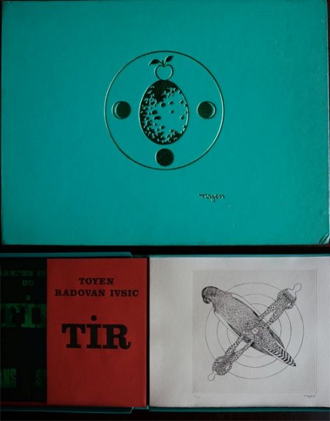 toyen8トワイヤンの署名入りオリジナルドライポイント二点が入った限定版『TIR』(RADOVAN IVSIC and TOYEN ,CYCLE DE DOUZE DESSINS 1939-1940 ET DEUX POINTES SÈCHES 1973. PARIS,ÉDITIONS MAINTENANT)。パリの古書店にて入手。値段の安い普及版と高価な限定版か悩んだ末、限定版を選択。同じものがおととし、Sotheby's のオークションに出品されていたようだ。