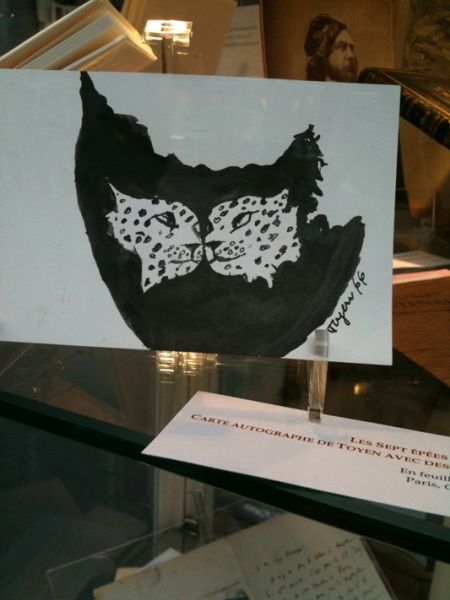 toyen1ガラスケースに入ったトワイヤンのドローイング。売れる直前、ガラスケースにあったドローイングを撮影しておいたのはせめてもの救いだった(パリ グラン・パレの古書市会場で)