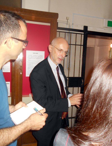 春画展内覧会でのティム・クラーク。