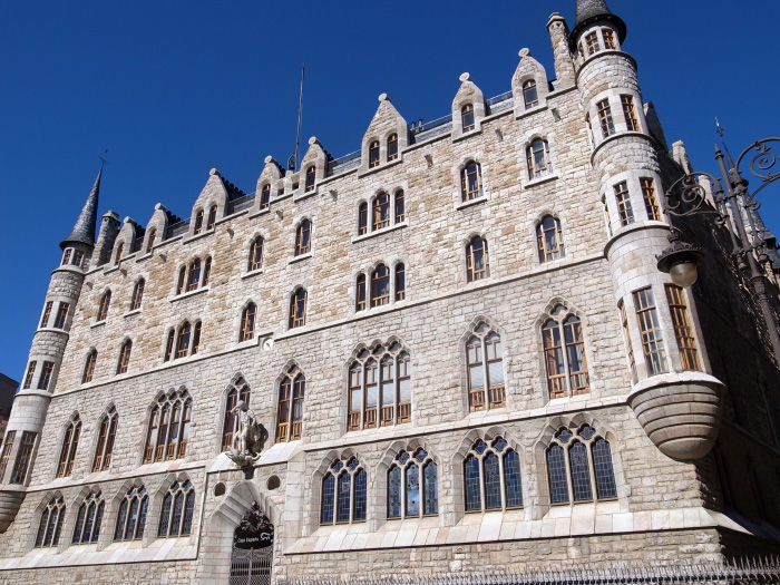 レオンにはアントニ・ガウディが残した建築がある。ガウディの作品をマッピングした地図で、アストルガ司教館とともにいわば飛び地をなしているのがこのカサ・ボティネスである。生粋のカタルーニャ人であったガウディがなぜこのアストゥリアス地方で設計活動を行ったのかといえば、このカサ・ボティネスの施主がカタルーニャ人で、グエルと仕事上の付き合いのある商社のオーナーであったためである。建築年代は1891年から92年。建築様式はネオゴシック様式である。バルセロナを中心としたカタルーニャのガウディ建築とは様式や素材が異なり、興味深い。外壁には地元の花崗岩を使用している。不揃いな大きさの石をランダムに使い、バランスをとりながらも時に荒々しいこの灰色のファサードには素材の力を感じる。