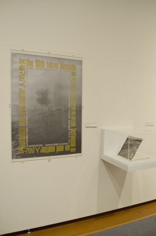 ここから「第2章 出来事を共有する」のコーナー。「人間と物質」展のカタログとポスターが展示されている。