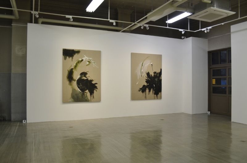 2階の堀田直輝の展示スペース。左《斜光》、右《through》
