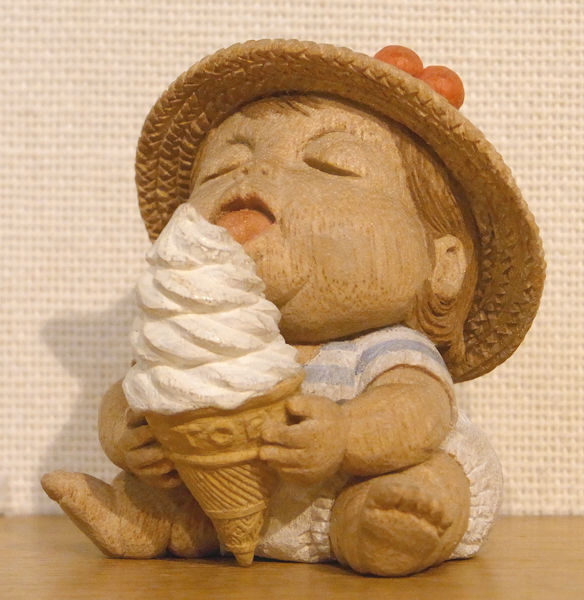 5㎝程の小さな木彫作品ですが、ああちゃんの可愛い仕草を細かく、丁寧に、愛情を込めて!をモットーに彫刻刀でちみちみと彫っています。