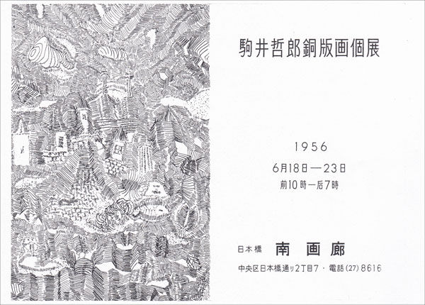 19560618南画廊(駒井哲郎展)南画廊の最初の展覧会「駒井哲郎銅版画個展」の案内状(画面をクリックしてください)