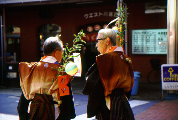 取材は翌2000年にも続き、秋山・赤瀬川の美術家組は〈博多どんたく〉が開催される5月連休中に、高梨さんは7月の〈博多祇園山笠〉に合わせて出動。家元は恵比寿流(えびすながれ)の重鎮である住職の計らいで長法被(当番法被とも呼ばれる正装)を着用し、クライマックスの〈追い山〉に向けて行われるさまざまな行事をライカで追いかけた(舁き手にかける勢水(きおいみず)対策として、防水カメラのニコノスも用意していたが出番はなかった)。