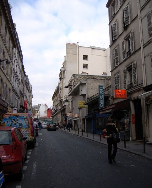 breton3フォンテーヌ通り。奥にキャバレー「ムーラン・ルージュ」の赤い建物が見える。