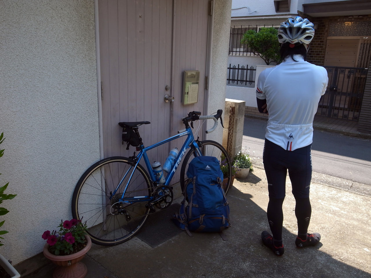 いざロードバイクに乗り、出発と意気込んだ所、トラブル発生。ヘルメットにバックパックの上部が当たり、顔を上げることができない。徒歩での山行を想定したバックパックは自転車に乗ることを前提としているわけもなく、このままでは走れない。これは事前に試走しなかった私が悪い。家の前でパッキングのやり直しである。毎回のことながら準備が大切なのだと思うのである。