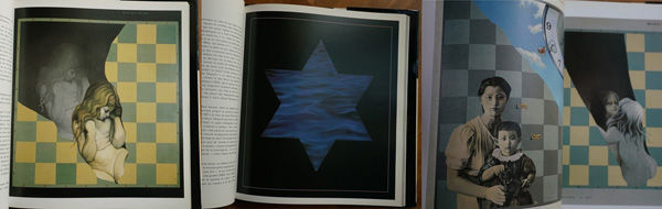 平沢さんの作品(画集『Yoshiko』 Somogy éditions d'art ,Paris)-左側は『妖精の距離2』 1980年)。中央は当時入手した『帰還-詩人・瀧口修造へのオマージュ』(1983年)。右側は幼少時の記憶をモチーフにした『砂時計のなかの蝶』(1980年)