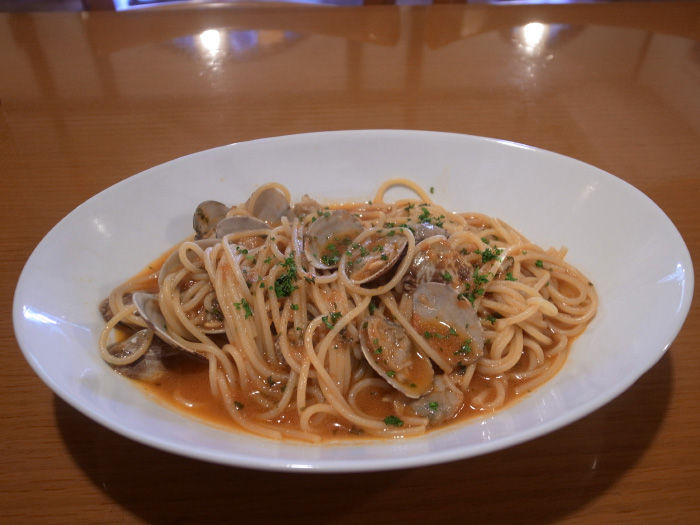自転車で走っているとお腹が減る。自転車はカロリー消費の激しいスポーツで(だからフィットネスジムには必ずエアロバイクがある)コースやペースにもよるが、1時間で約400カロリーを消費すると言われる。だからレースではペダルを漕ぎながら補給食を食べる。そうしないとハンガーノックと言われる全く力の出ない症状が出てしまい、こうなるとプロでもレースは終わりである。ちょうど4号線を北上している途中、道路沿いにおいしそうなイタリアンレストランを見つける。ジロ・デ・イタリアが開催中ということもあり、美味しいパスタが食べたくなった。時計を見るとちょうど12:30だったのでパーキングエリアにTREKを止めて入店することにする。