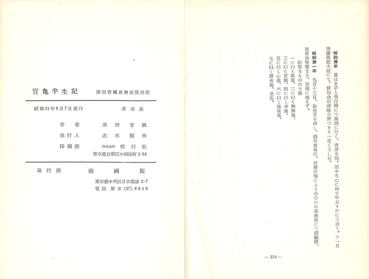 津田青楓喜寿祝賀出版とサブタイトルのある『盲亀半生記』