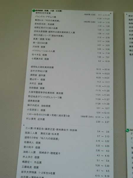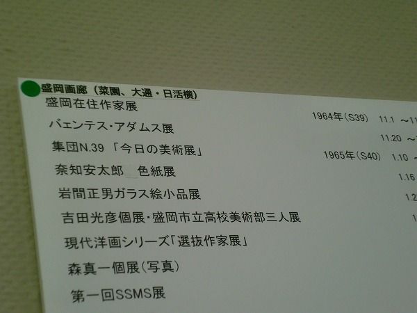 偲ぶ会に間に合わせるべく急遽作成されたMORIOKA第一画廊の開催展覧会リスト。