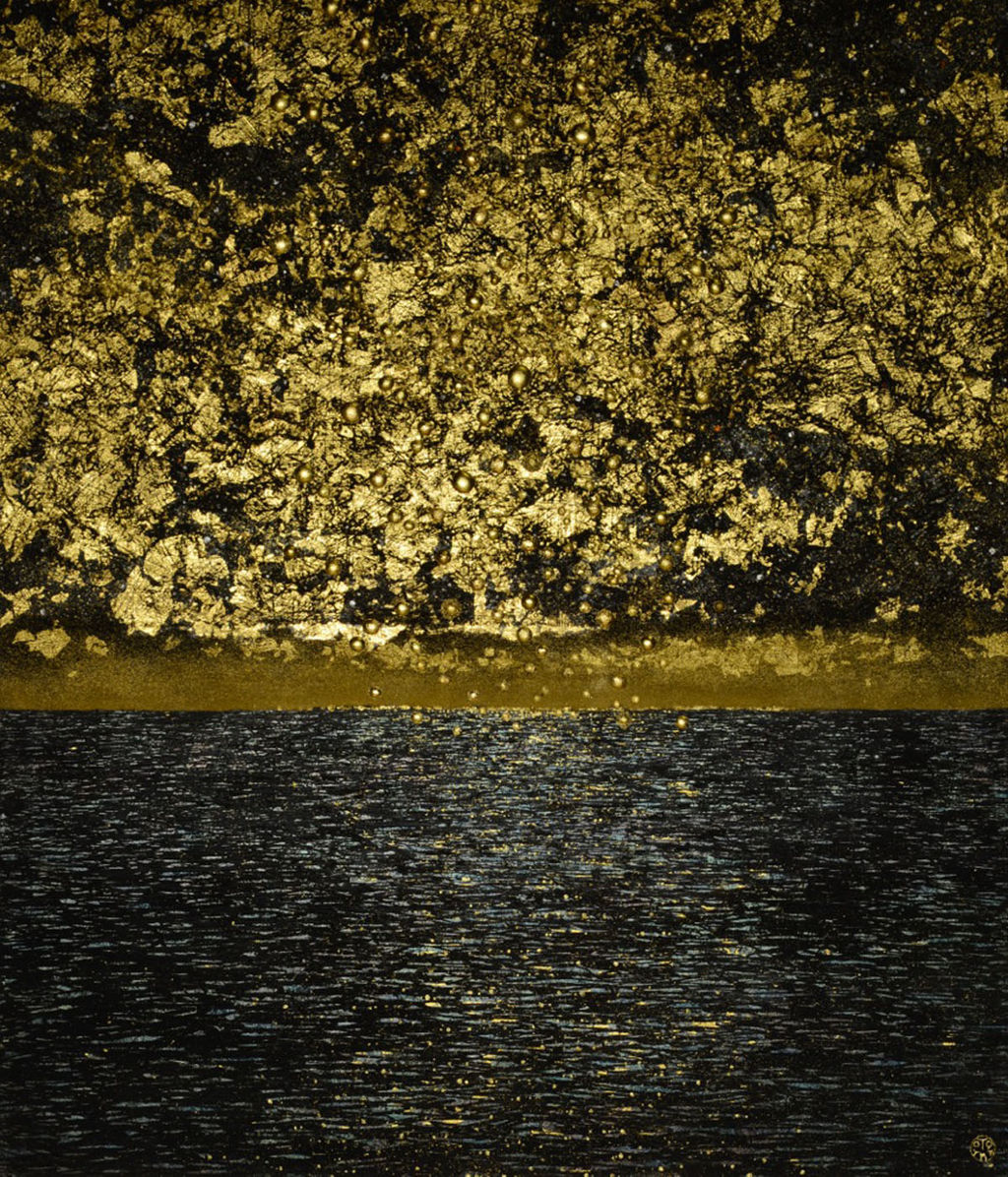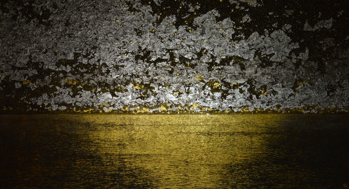 箔画(Lacquer, Gold/Silver/Platinum foil, Charcoal, Resin on Wood panel)