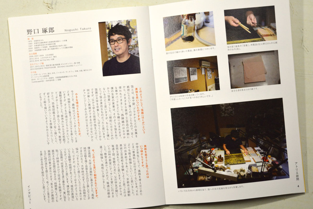 散らかり放題の仕事部屋もカッコよく写して頂き、箔画制作に必要な材料や、高画質で作品の画像も載せて頂き嬉しかったです。