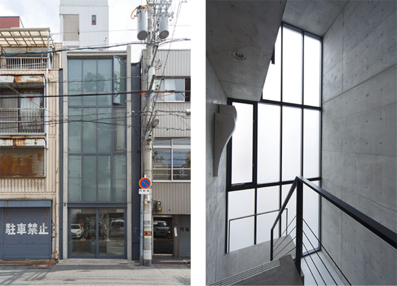 1994年に竣工した「日本橋の家」は、大阪の日本橋に建つ4階建ての住宅です。間口約3m、奥行15mで、建坪わずか17坪ほどと狭小の建物ですが、敷地環境からは想像もつかないほど豊かな内部空間を有しており、「住吉の長屋」などに代表される安藤忠雄の設計手法がいかんなく発揮されています。