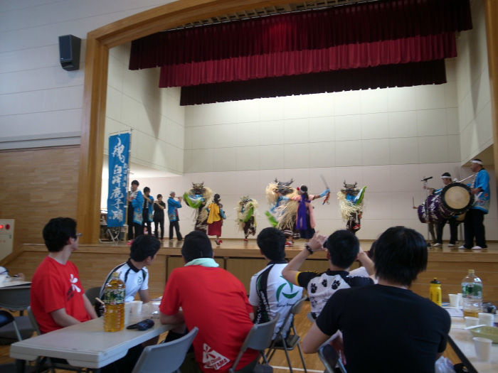 ヒルクライムは上りよりも下りに注意する必要がある。出そうと思えば80キロ以上ものスピードを出せるロードバイクでカーブを下るのは危険なため、順番に隊列をつくって下るのである。もちろん追い越しは禁止である。参加者全員がゴール地点から無事に下り、スタート地点まで戻ってくると、受付場所であった体育館で表彰式が行われた。表彰に際し、出し物として町の文化を伝える意味を込めた子どもたちによる地元の踊りを見ることができた。こうした土地ごとの伝統を伝えることも自転車レースが可能にすることの一つであるように思う。キツいレースをともに走った人とは絆が生まれる。参加者は地元やその周辺の人が多いため、直に東北の現状についての話を伺うことができた。また東北に来る時は連絡をくれるようにと言っていただき、嬉しかった。こうしたことを積み重ねることで、自分にも何か力になれることを見つけることができるのではないかと強く思う。