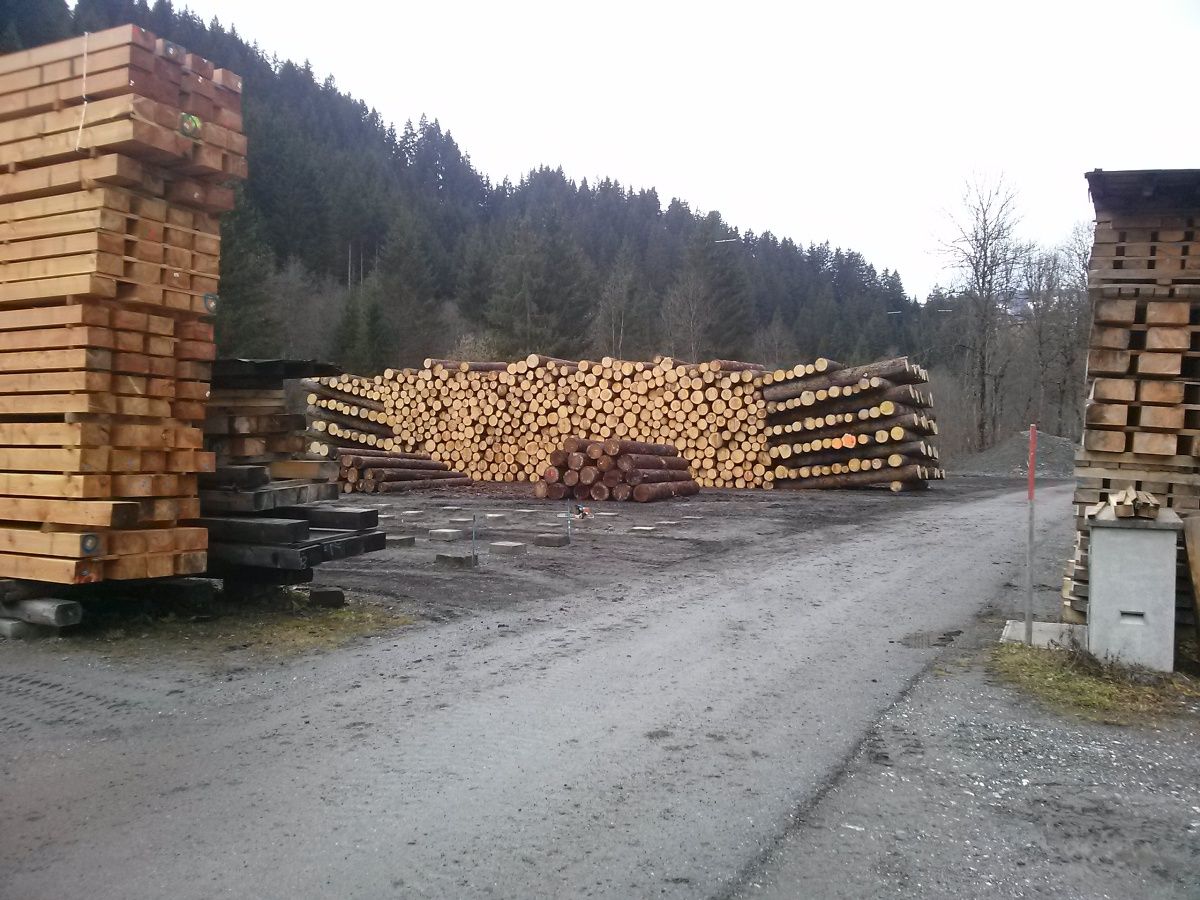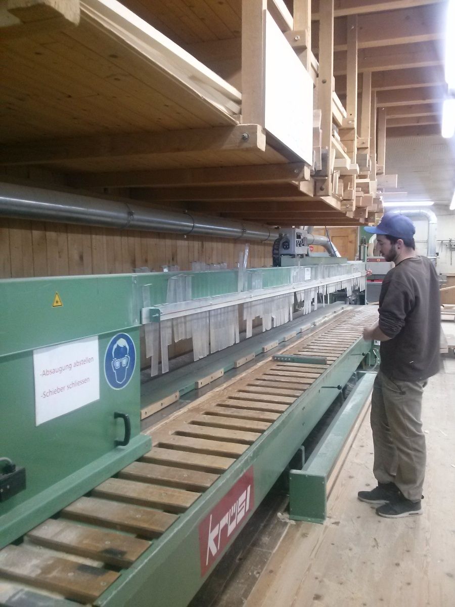 場所を変えて木材の保管場所へ。この一帯もとても良い香りがします。こうして山に囲まれた場所でその土地で取れる木々(スプルースFichte、カラマツLärche、スイスマツArve)で建材や家具を作る。とても素直で健康的な仕事です。