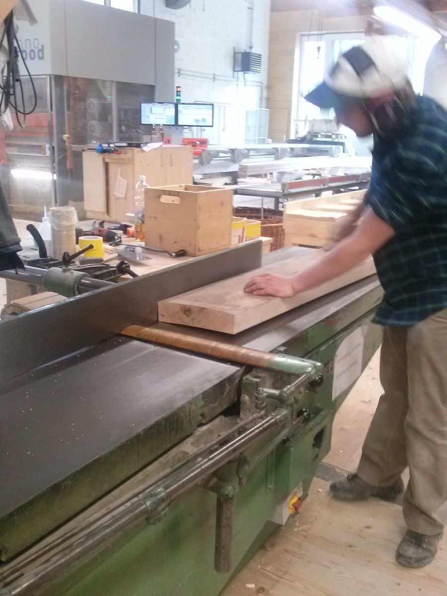 Workflow としては仕入れた丸太をカット職人が大まかに角材とし、大工が無垢のままもしくは集成材にした材木を寸法通りに製材し、必要であれば現場で組み立てる。木工職人は扉から机、バスタブまでの幅広い家具を作り、また巨大で精密なCNCマシンで行う作業を受け持つ職人もいます。訪れた木工所では木造住宅の設計、一部施行施工も受注する比較的大きな規模とシステムを持つ創立80年以上の会社で従業員は全部で35人程度、カット職人、事務員が数名、木工職人と大工が大半でした。展示した全長5mほどの大きな模型を発注した別の製作所Modellbauは比べて小さな会社であったため、当然ながら1人が行う作業の幅は増えていました。