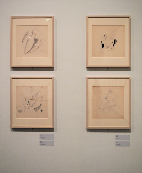 こちらも1936年に制作されたデッサン7点。先ほどのデッサン群とは異なり、具体的なフォルムはなく、非定型のイメージが続く。オートマティスムを実践していたことがわかる作品である。