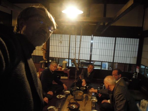 茅葺き民家の民宿「格山」の囲炉裏端での協議(2015年12月24日)(もりした たかし)