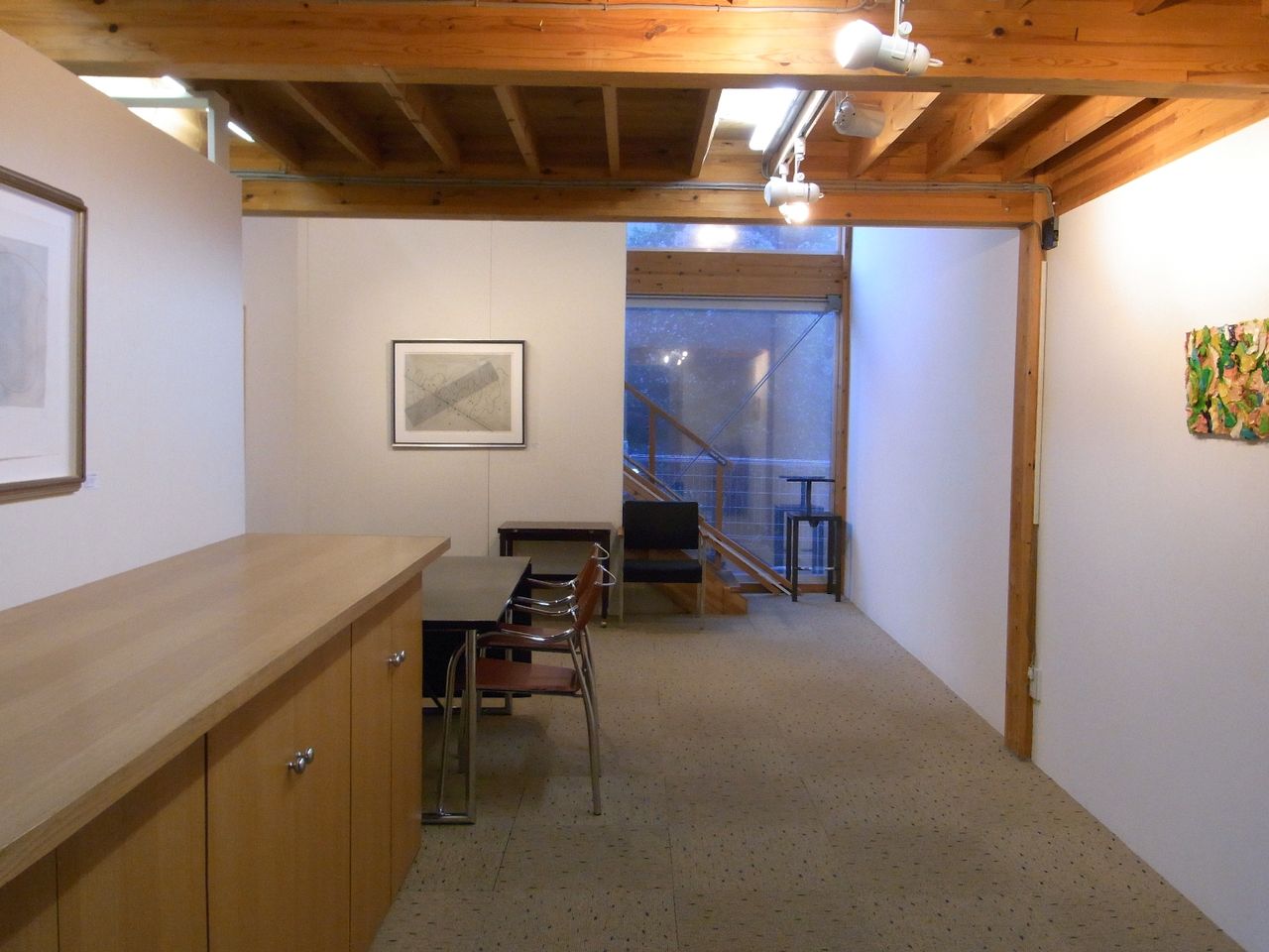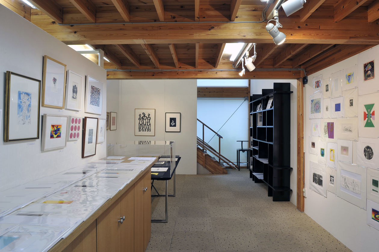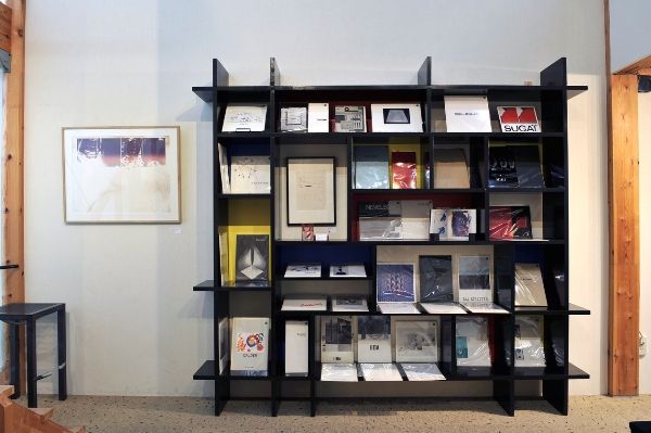 壁面には文承根の版画作品10点を展示しました。今年の夢は先ず「好きな本」を画廊に展示すること、そして「音楽」でした。本の舞台に誂えた特注本棚、通称モンドリアン本棚は仙台の小林さんの労作です。
