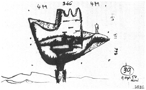このことは、建物のスタイルと関りなくドローイングのスタイルは一貫していたことからもある程度伺い知ることができる。彼のドローイング、とくにインテリアのそれでは常に逞しい素朴な人間像が描かれている。それは18世紀の啓蒙期以来の「高貴な蛮人」のテーマの踏襲である。だが、それは同時に「新精神」によって武装されているのだ。逞しい人体の有機的な曲線は、しかしル・コルビュジエにとって住居機械の精確な直線と矛盾するものではなかった。何故乱ら両者を支配するのはギリシアの黄金比以来の正しく美しいプロポーションのシステムだったからである。彼はそれを後にモジュロールと呼ぶシステムにまとめた。それは片手を太陽に向けて伸ばした人体像の各部のプロポーションを基に展開されたシステムであり、ル・コルビュジエはこのシステムを建物の各部に用いつづけた。後期の、より逞しい、殆んど人間の素足のような柱脚をもち、肉感的なカーブをもった建物に対しても同様である。数学的な精確さと官能的な詩情との間には、この巨匠にとって、如何なる違いもなかったのかもしれない。