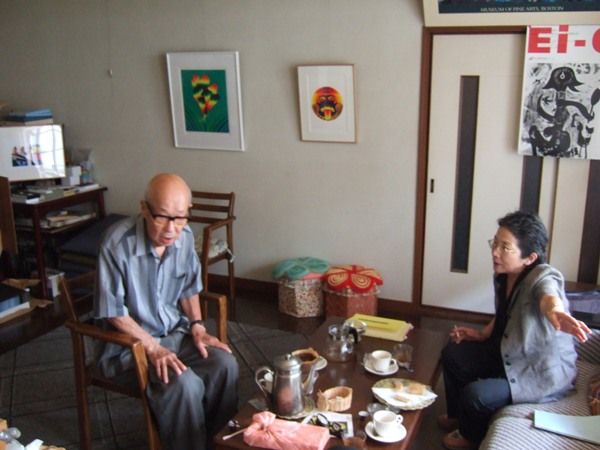 2004年5月8日~16日に多田記念大野有終会館で開催された「虹のふるさと大野 靉嘔展」のオープニングにて。