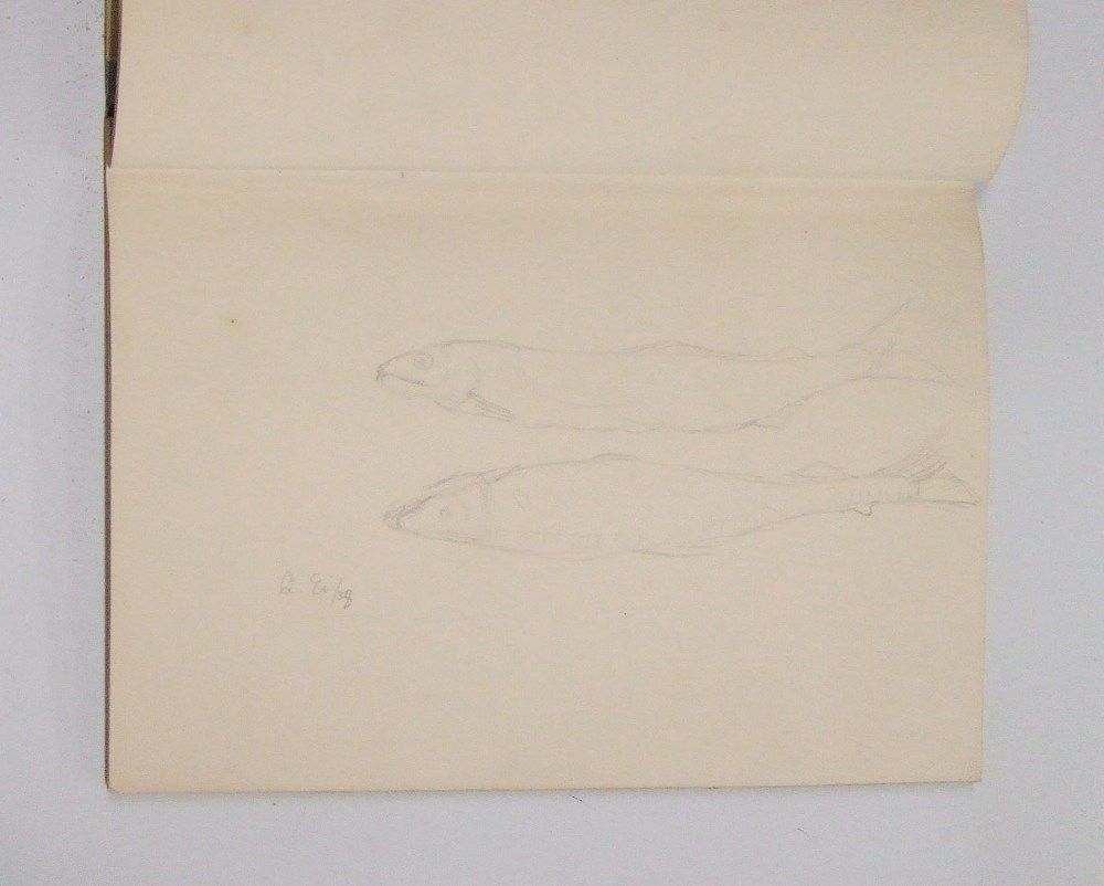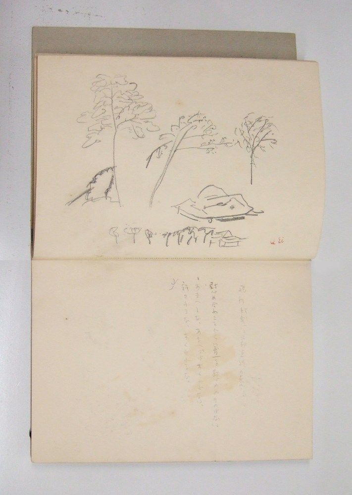 瑛九は若い頃の作品を自ら燃やしてしまった時期がありますが、これは幸運にもほぼ無傷で残されたスケッチ帖です。うち2点(頁)には自筆で Q.Ei/38 とサインがされています。
