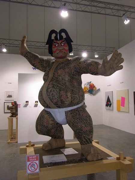 葉栗剛の新大作《男気》(KABUKI)ライトの位置より前に出てしまったので逆光気味ですが、そのサイズとダイナミックなポーズで来場者の注目を集めていました。同じポーズを取って撮影している方々も多かったです。