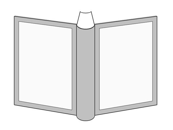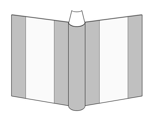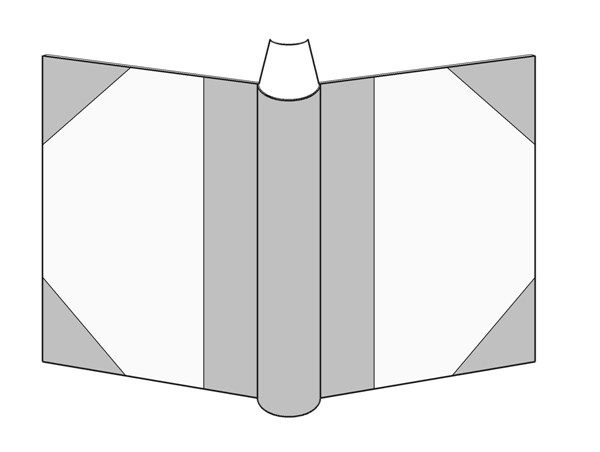 全ての折丁のランゲットを接着したあと、表装材でおおい、装飾を施す。和装本から着想を得た製本形態(下図参照)。
