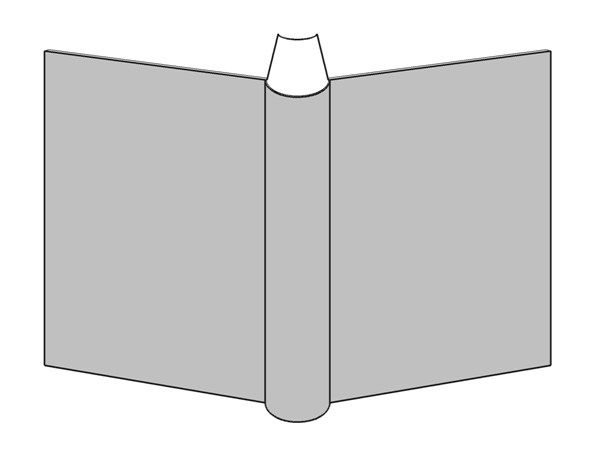 折丁のノドと背中合わせになるように折った紙を、糸かがりし、結びつける。背中合わせに綴じた紙をランゲットと言う。