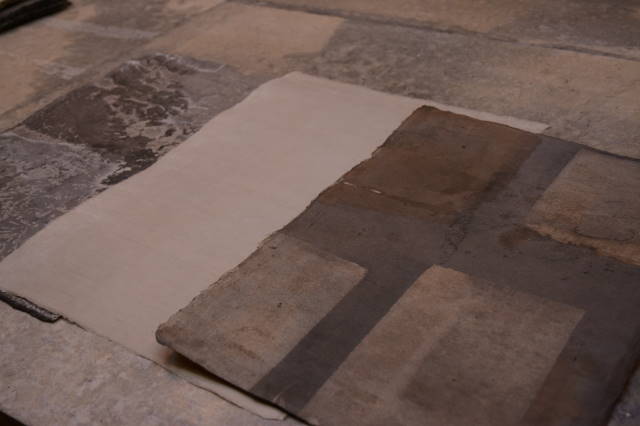 坂本さんは店に常駐されてはおらず、国内の何カ所かにある作業場で紙を染めているらしい。お店には週一回くらい顔を出すと、スタッフの方がおっしゃっていた。修復用の白い和紙の話を中心に書いたが、この手染め紙もまた素晴らしいもので、小ぶりのものから壁掛けになるくらいの大きさのものまで扱っている。