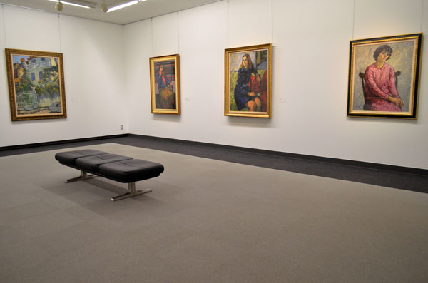 都城市立美術館_13山田新一の作品群。生まれは台北で、幼少期は父親の仕事に伴って、各地を転々としていた。宮崎県の旧制都城中学校に通い、本籍は都城市にあった。東京美術学校西洋画科に入学し、藤島武二に師事。日展や光風会で活躍する傍ら、各地で後進の指導に勤めた。佐伯祐三と親交の深かった人物としても知られる。