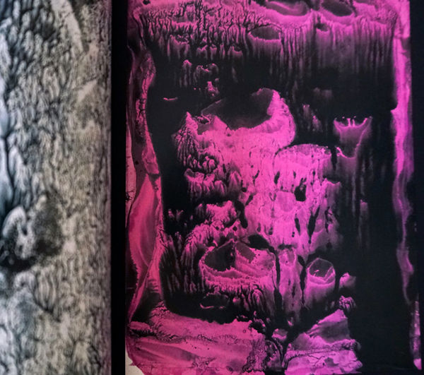 写真<6>『瀧口修造 夢の漂流物』展では、瀧口修造のデカルコマニーが多数展示されていた。作品を眺めていると、まさに「有の世界が無を訪れ、無の世界が有に呼びかける」(「黒の中のオレンジ」瀧口修造-『現代の思想6 美の冒険』 平凡社 1968年)空間がそこにあることをひしひしと感じた。