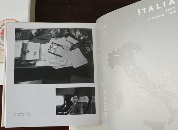 『瀧口修造1958-旅する眼差し』から。下は機中の瀧口修造。