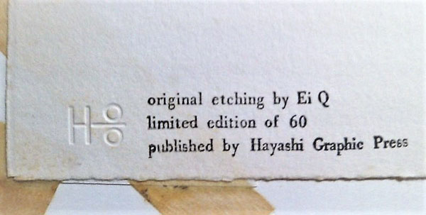 参考画像:林グラフィックプレスで刷られたエッチングにはスタンプによる裏書がある。original etching by Ei Q